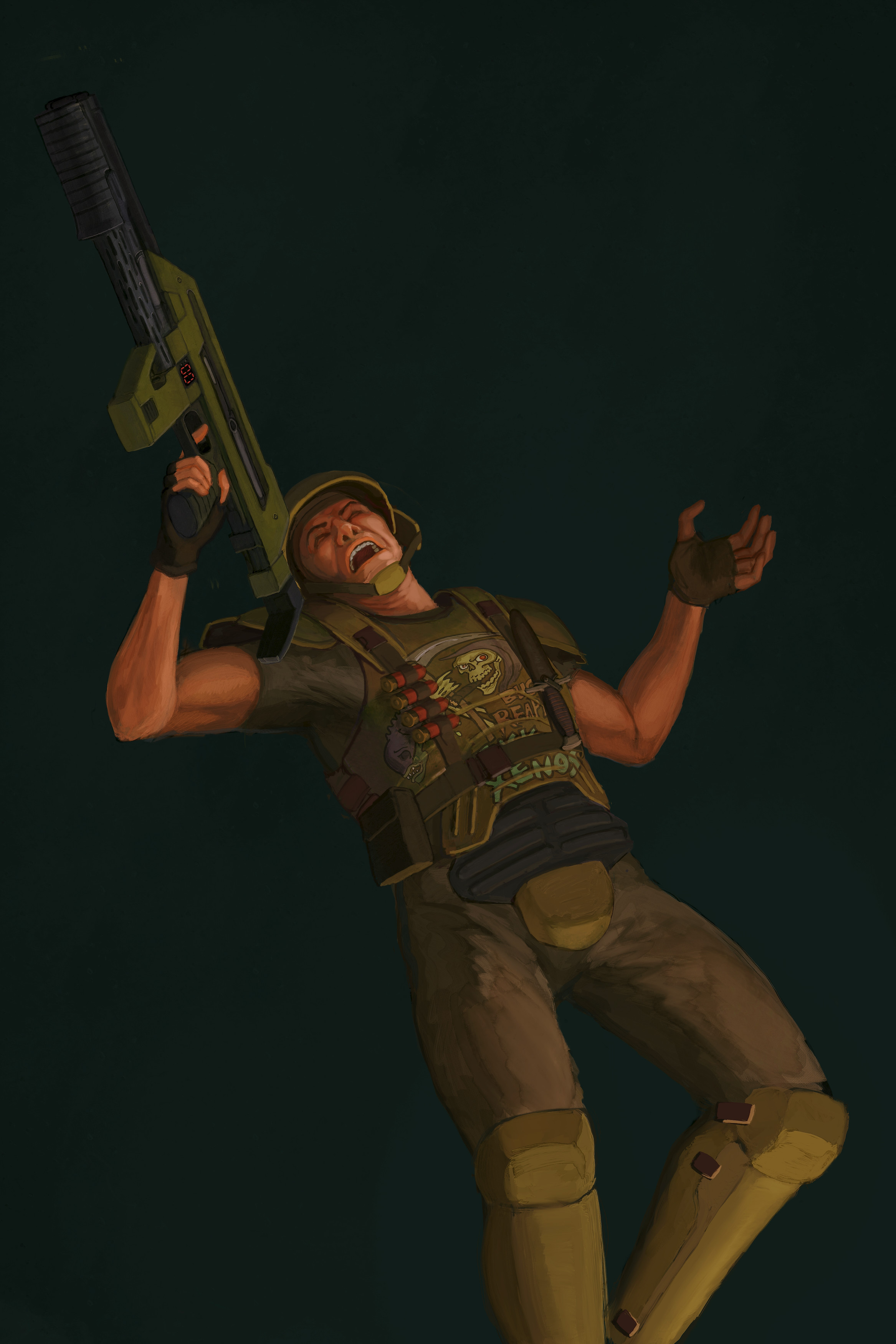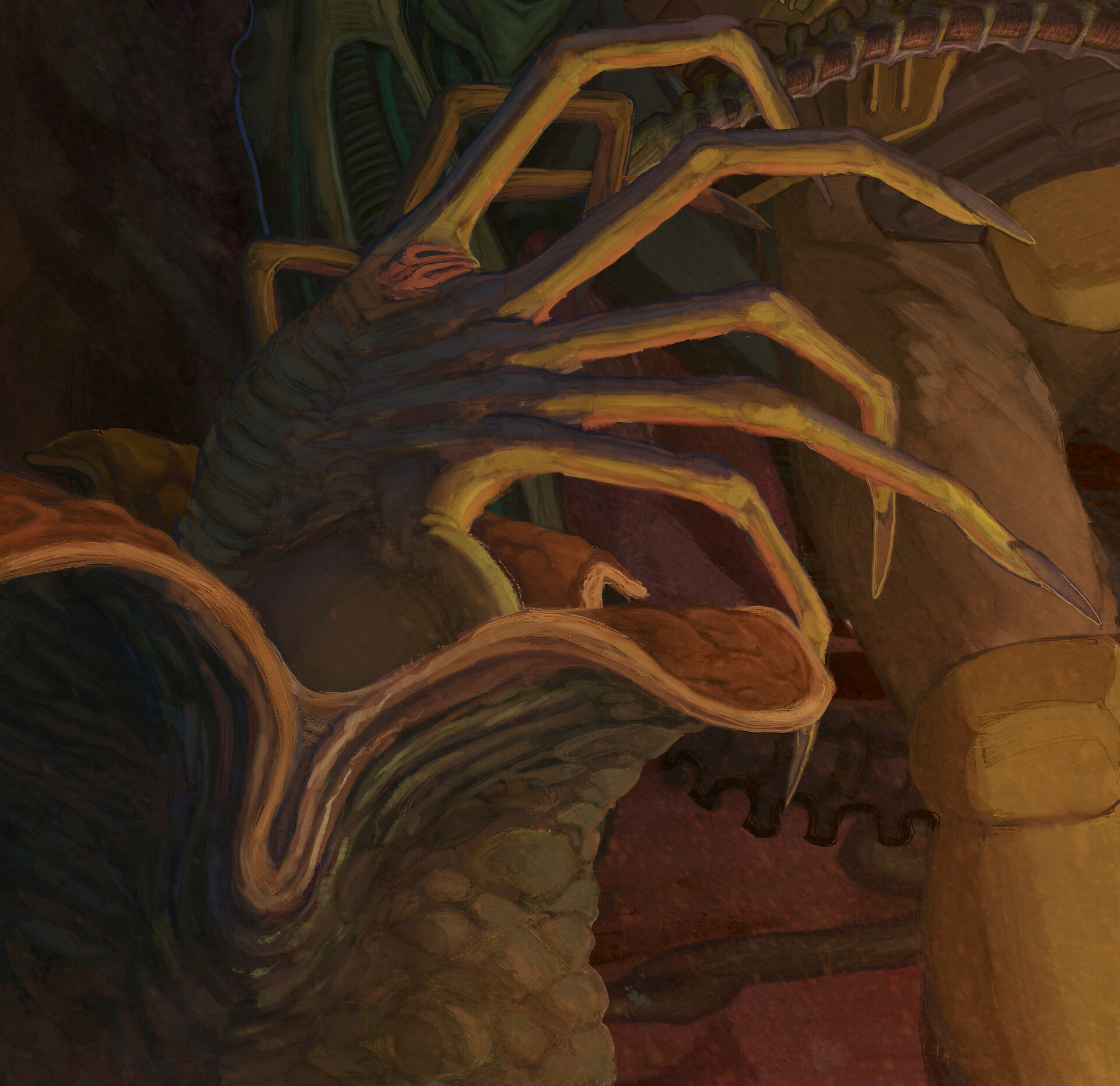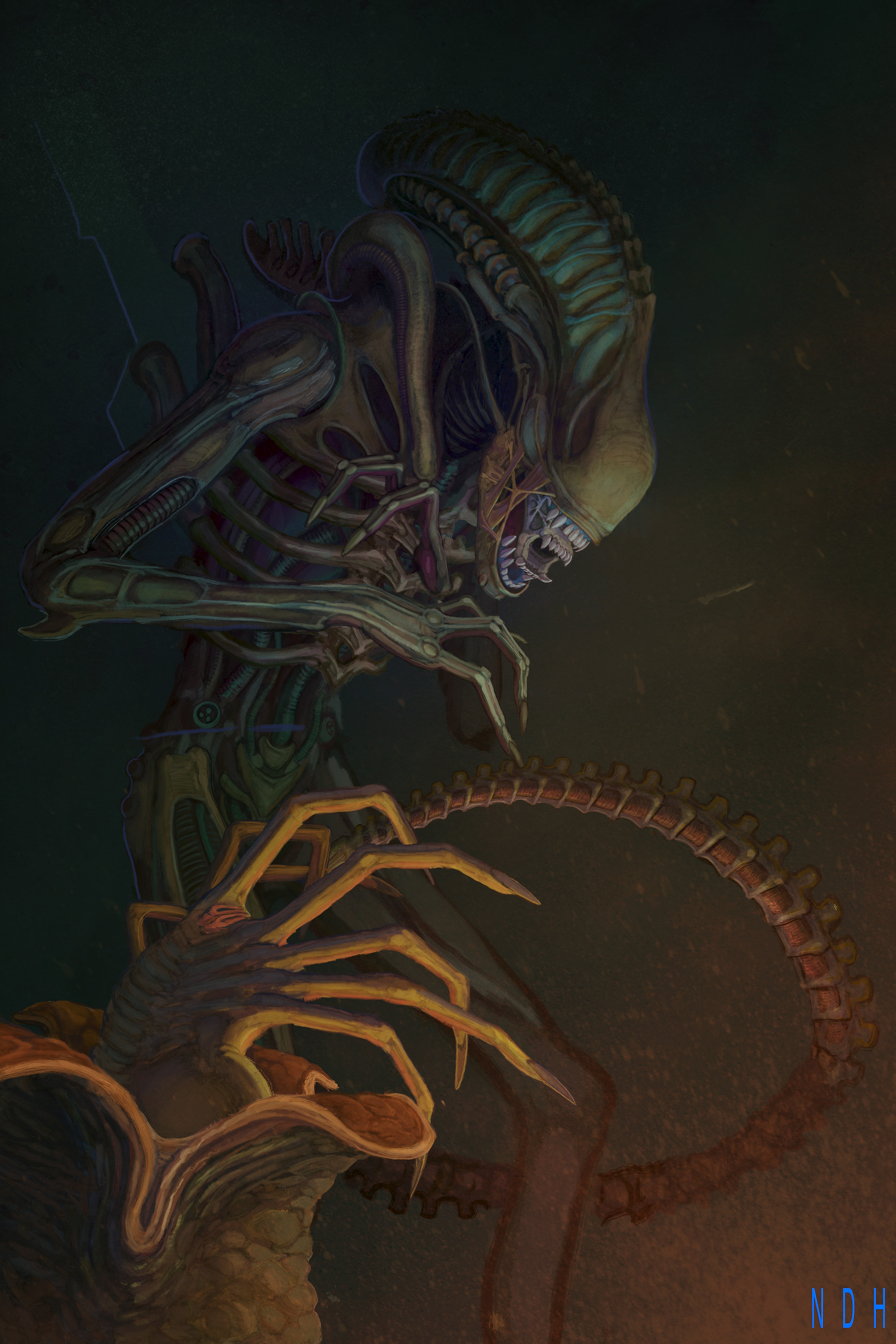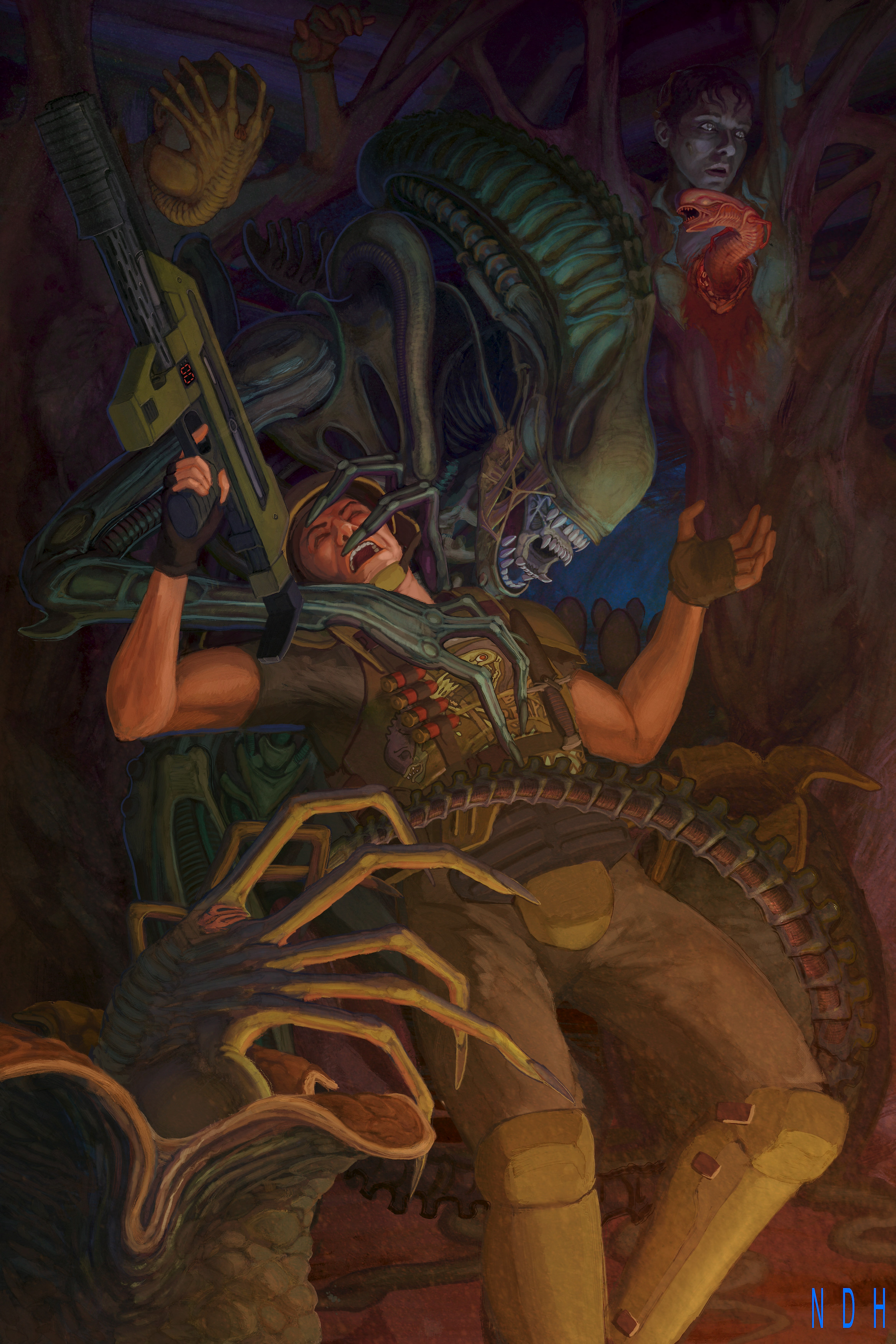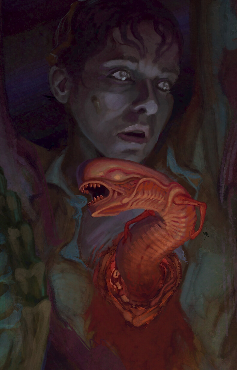 This is something fun with which I've been puttering around between other projects for almost a year. I went into the file stats in Procreate expecting it to be something like 200 hours but it turns out it was only 70... It only felt like forever. I'm huge fanatic for the 'Alien' movies and as I kid, I was introduced to the franchise through the comics, toys and video games. Something about that second hand wave of media that embraced the color and caught my eye from across the comic book store before I had ever even seen the movies. So I wanted to embrace that.